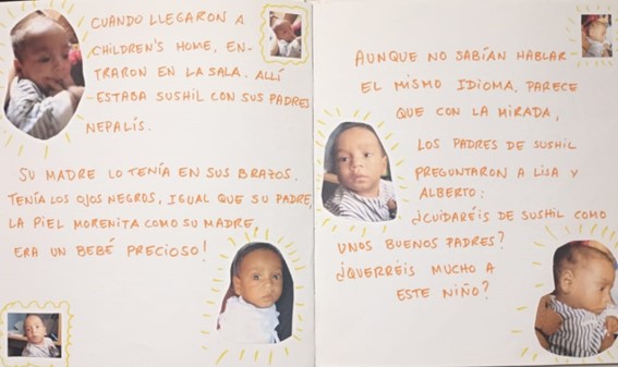 67) Esta es una de las páginas centrales del cuento que le hice a Sushil cuando cumplió 7 años, explicándole cómo fue el proceso por el cual formamos una familia. Relata cómo fue el primer momento que nos conocimos. Del relato Mi hijo del Nepal.
