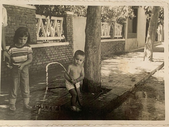 74) Maricruz y yo en el patio trasero de la casa de Paseo Garbí. Del relato Maricruz.