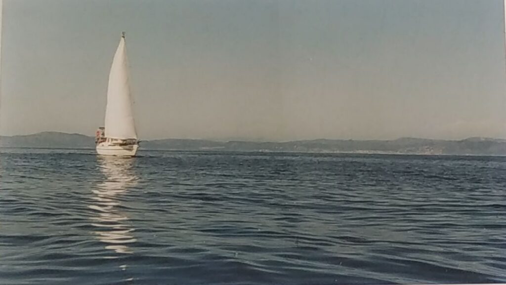24) El Black Jack rumbo a Cerdeña, con el viento de popa y el spinnaker abierto. Del relato Ángel.