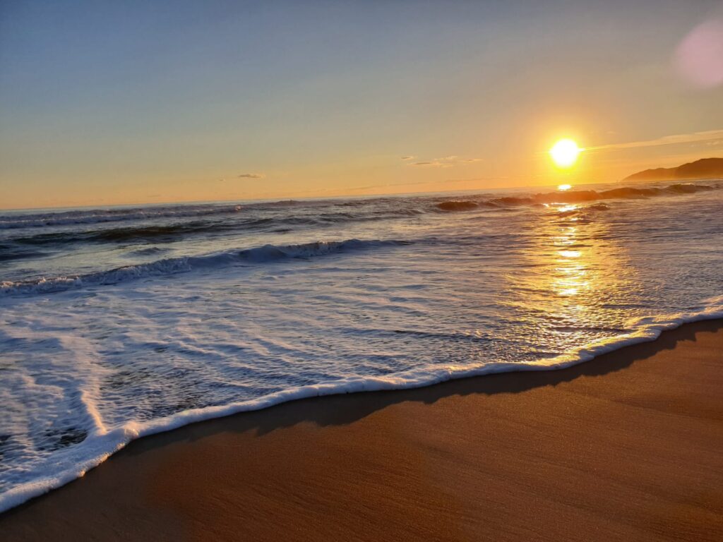 75) La playa de Castelldefels, en invierno el sol se pone por el mar. Del relato 2001: Una odisea en el espacio.
